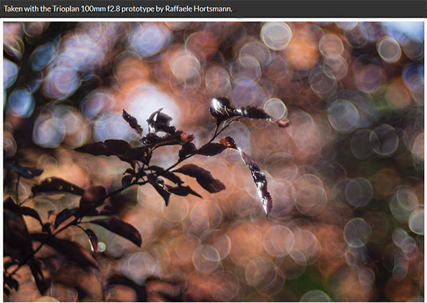 Il nuovo Meyer-Optik-Görlitz Trioplan 100mm f/2.8 non è semplicemente una replica dello storico obiettivo, è un nuovo progetto che affonda le sue radici nello schema ottico originale Meyer Optik. Negli anni questo obiettivo ha raccolto una schiera di appassionati per una caratteristica fondamentale: il bokeh davvero particolarissimo, definito a 'bolla di sapone'. Se utilizzato a tutta apertura e con intense fonti luminose sullo sfonfo l'obiettivo regala questo sfocato inconfondibile, ma è anche apprezzato per la resa generale e per una buona nitidezza a diaframmi più chiusi. La nuova versione è stata studiata per le moderne fotocamere digitali, ma non perderà la sua caratteristica fondamentale. Sarà disponibile per Canon e Nikon, ma anche per le mirrorless Sony, Fujifilm e Micro Quattro Terzi, verso la fine dell'anno, forse in concomitanza del compleanno del primo Trioplan. Non sarà un'ottica economica, si parla di €1.400, ma dovrebbe essere garantita la qualità Made in Germany.