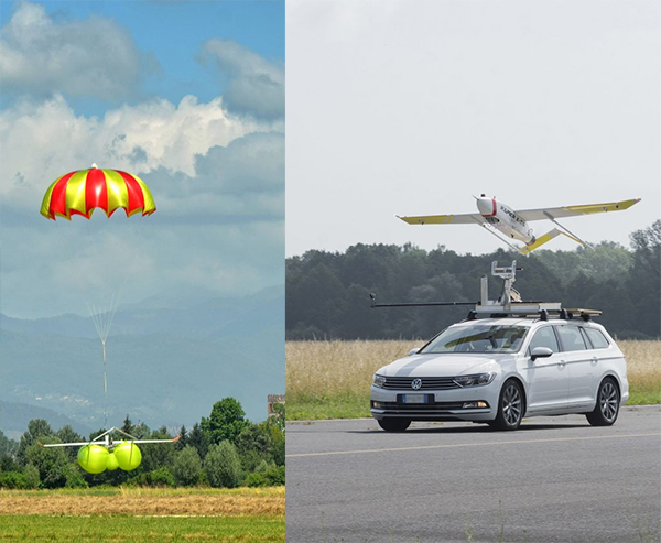 I droni possono decollare in spazi molto ristretti, grazie a un sistema a catapulta e anche nella fase di atterraggio non richiedono ampi spazi: il rientro è infatti effettuato grazie ad un paracadute e a due grossi airbag, con una procedura completamente automatizzata.