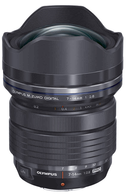 L'ottica fisheye si fa notare per un'apertura mai vista prima su un obiettivo del genere f/1.8: la versione precedente per reflex aveva diaframma massimo F3.5. Anche lo zoom si fa notare nello stesso campo, con apertura migliorata rispetto alla versione precedente (e a quella per Micro Quattro Terzi di Panasonic) con un dato che ora fa segnare f/2.8. Il nuovo M.ZUIKO DIGITAL ED 7-14mm 1:2.8 PRO è resistente ad acqua e polvere, grazie a 11 guarnizioni, e promette massimo contenimento delle aberrazioni, ad esempio del coma, puntando a farsi apprezzare anche da chi desidera puntare l'ottica verso il cielo stellato. Offre una distanza minima di messa a fuoco pari a 7,5cm dalla lente frontale, molto interessante per sfruttare al massimo le potenzialità creative di un'ottica con un angolo di campo così elevato. È dotato di comode funzionalità, come la ghiera di messa a fuoco a doppia posizione che permette di passare istantaneamente dalla messa a fuoco automatica a quella manuale tirando la ghiera in direzione del corpo macchina e del tasto L-Fn, a cui assegnare una funzione a piacere tra quelle del menu della fotocamera.