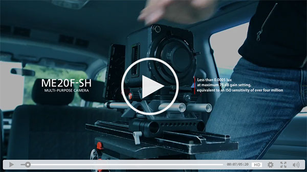 Un apparecchio da 30.000$ di listino, dotata di attacco EF ed EF-S, con filtri ND e IR-cut che possono essere disattivati a piacere, connettori 3G/HD-SDI e HDMI, jack 2,5 e 3,5mm e una porta RS-422 a 8-pin che permette di abbinare accessori di audio e video monitoring e di controllo remoto. Canon ha rilasciato un video in cui si vede la nuova ME20F-Sh all'opera in diverse situazioni: si fa notare per la pulizia dell'immagine a sensibilità anche superiori ai 100.000 ISO e soprattutto il filmato mostra le caratteristiche di visione al buio della videocamera quando la sensibilità è impostata al massimo.