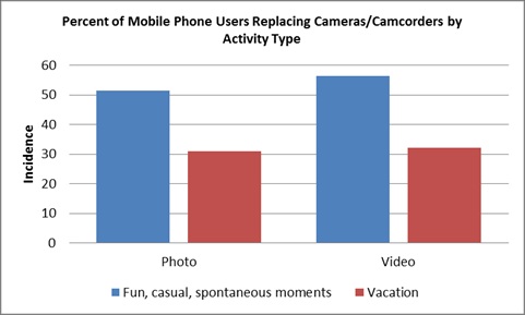 Il dato nasconde due fenomeni: da un lato l'aumentato numero di scatti fatti anche in momenti della vita quotidiana, grazie al fatto che il telefonino è sempre in tasca a portata di mano, dall'altro la scelta di un numero crescente di consumatori di sostituire totalmente la propria compatta con la fotocamera di un cellulare, magari uno smartphone che offra anche strumenti di editing in tempo reale, filtri creativi e la possibilità di condividere immediatamente i propri scatti via email o sui più diffusi social network.
