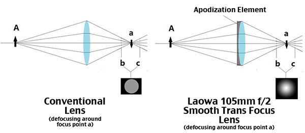 Questo tipo di filtro era stato usato da Minolta ai tempi dell'analogico ed è stato riportato recentemente agli onori della cronaca prima da Sony con il 135mm F2.8 Smooth Transition Focus e da Fujifilm poi, che ha presentato una versione del suo medio tele da ritratto Fujinon XF56mm F1.2R APD: caratterizzato da un gradiente radiale questo filtro punta a creare un bokeh molto morbido e piacevole. In particolare il suo effetto attenua le transizioni tonali nelle zone fuori fuoco, rendendo lo sfocato più 'cremoso'.
