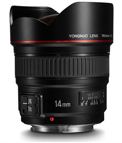 Yongnuo, realtà cinese che abbiamo già avuto modo di conoscere per i suoi obiettivi "clone" di alcune lenti Canon blasonate, ha annunciato un nuovo obiettivo. Si tratta di un grandangolare 14mm f/2.8 con autofocus e rappresenta un'alternativa a prezzo meno proibitivo per coloro i quali cercano un'ottica fissa ad ampia apertura e ampio angolo di campo.