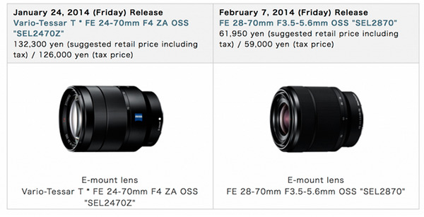 La buona notizia è che non manca molto all'arrivo sul mercato del nuovo 24-70mm F4 ZA OSS, infatti Sony Japan ha confermato la sua commercializzazione a partire dal 24 gennaio 2014. Il prezzo di listino di 132.300 yen è più contenuto di quanto si pensasse ed equivale a circa €915.
